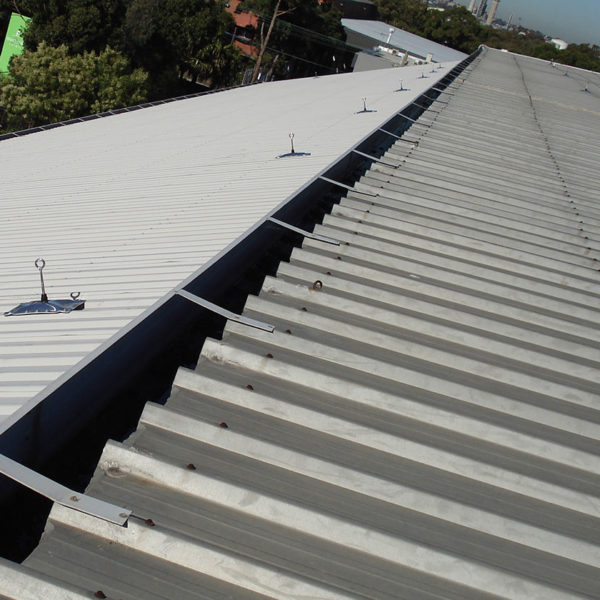An anchor point designed for use on metal roof sheet profiles where access to timber is difficult. Multitude of drilling points to suit different profiles.
