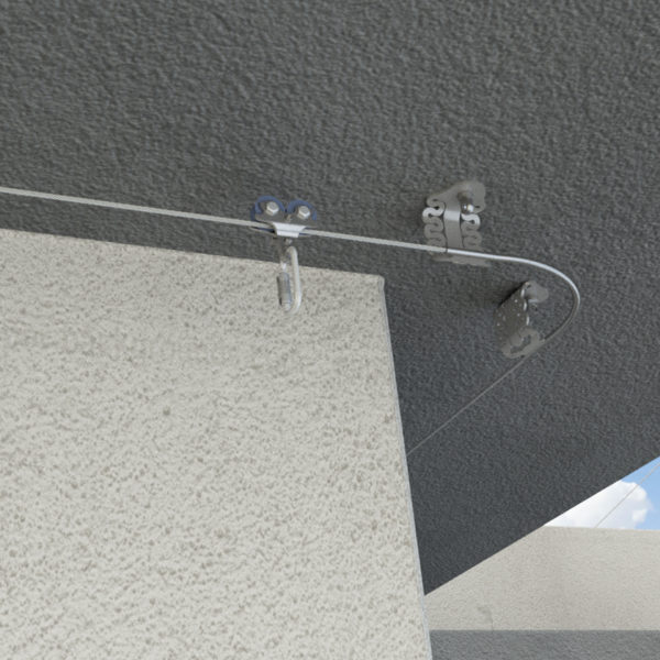 A height safety system anchor point designed to be mounted into concrete as part of a horizontal lifeline system, as end anchor attachment points for the cable to start and terminate at.