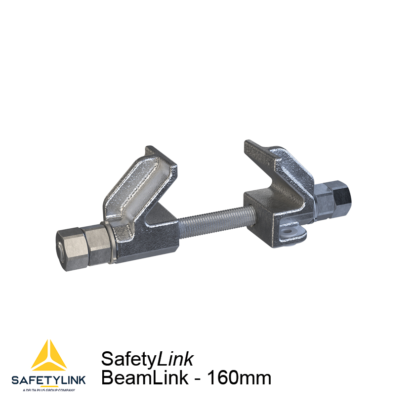 Allows a user to set a fall protection anchor point above a grid mesh clad structure across two supporting beams that distribute the load of any fall that occurs